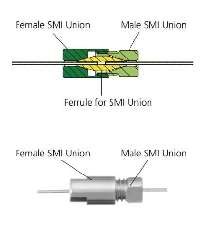 SMI Unions are characterized by low leakage, inertness, low dead volume and low heat capacity. Select appropriate components according to the inner diameter of the column to be connected.